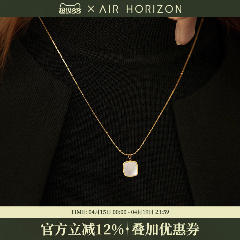 轻奢项链女高级感小众天然白贝母方形吊坠秋冬长款高档毛衣链配饰