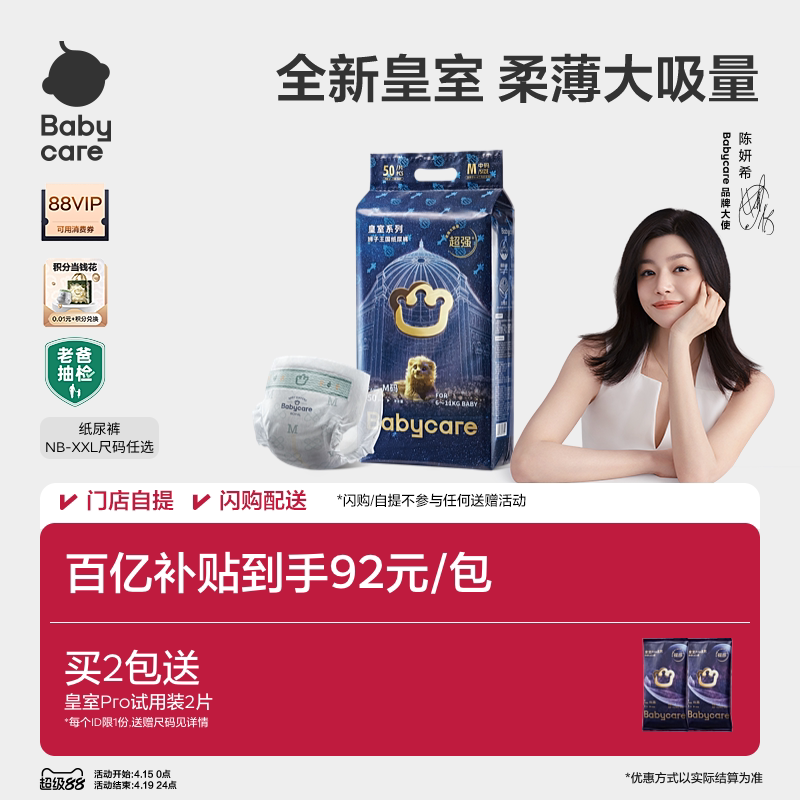 babycare拉拉裤皇室新生儿超薄透气婴儿尿不湿一箱2包装尺码任选