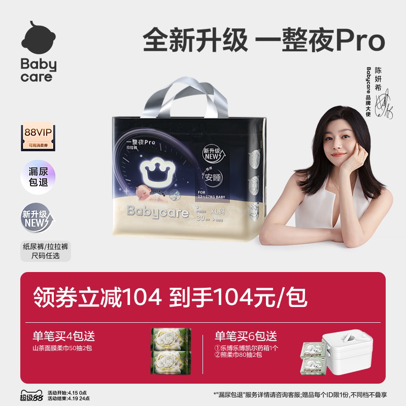 babycare一整夜pro纸尿裤拉拉裤婴儿夜用大吸量透气宝宝尿不湿包