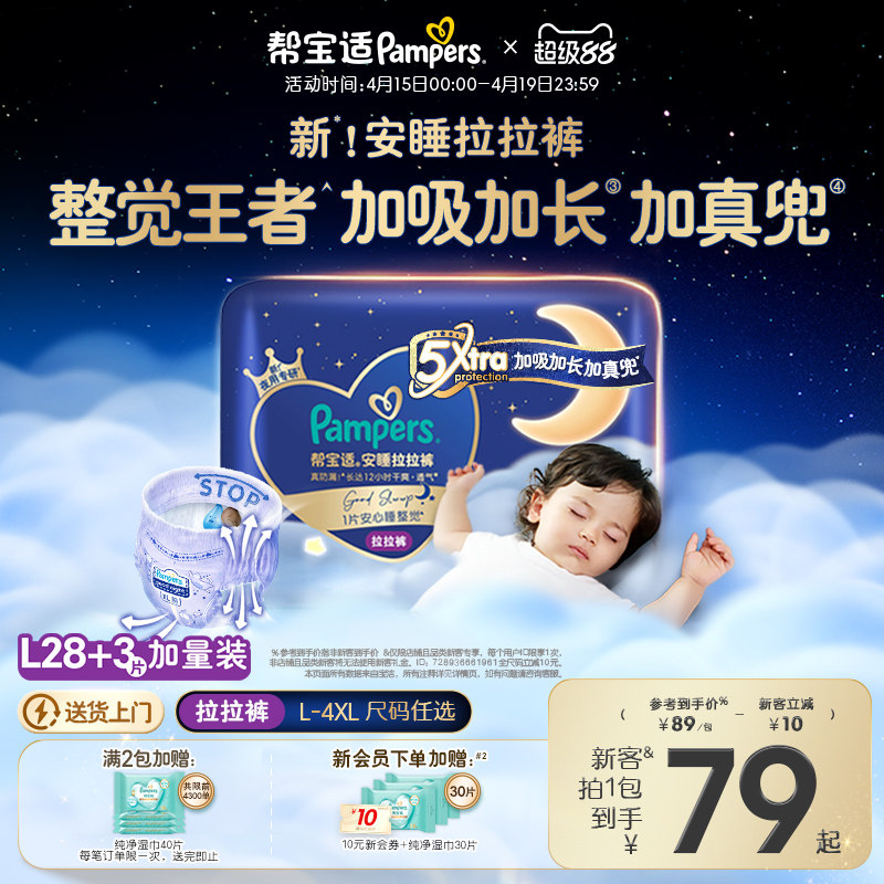 【整觉王者】帮宝适安睡拉拉裤散热超薄透气L-4XL夜用尿不湿尿裤