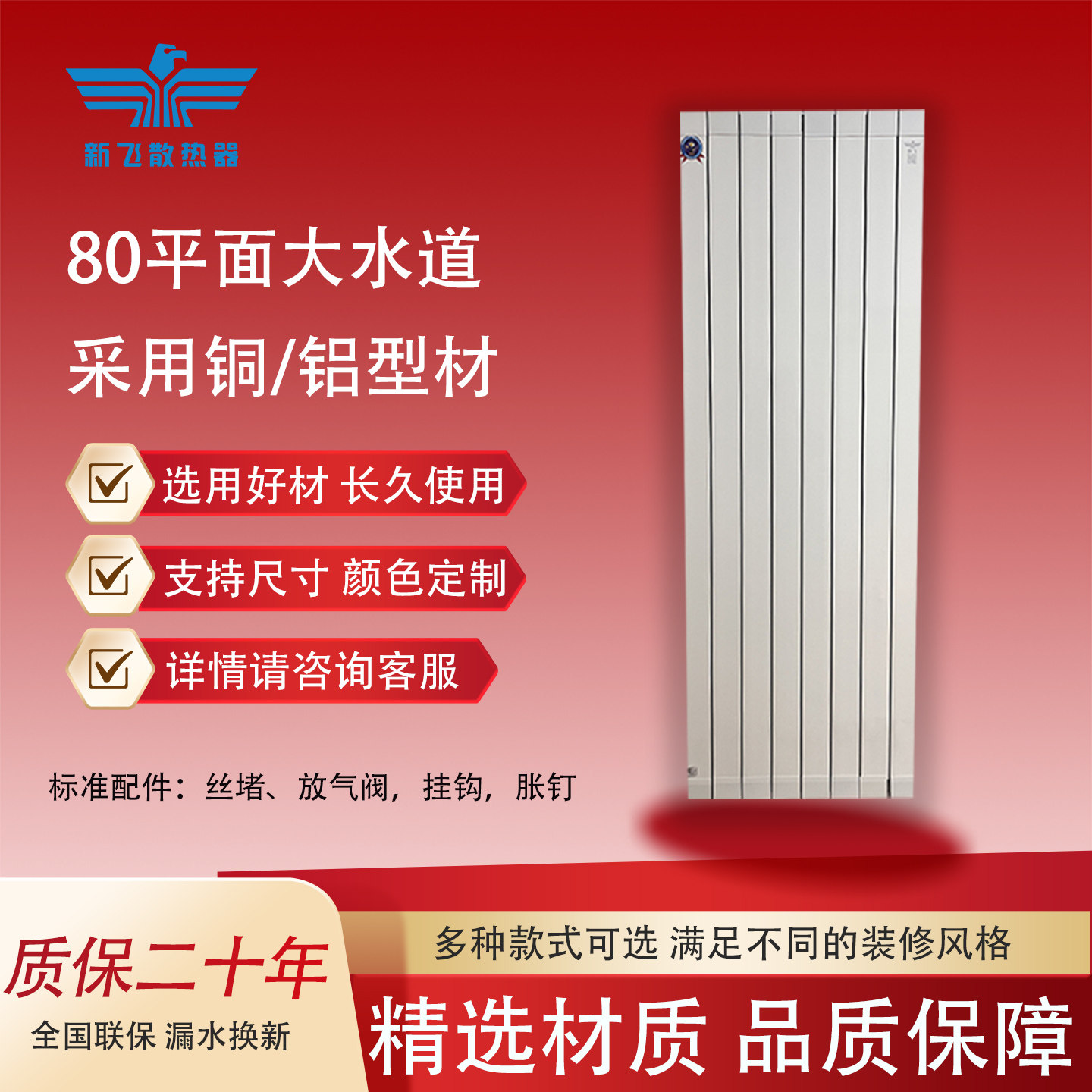 铜铝复合暖气片家用水暖地暖壁挂式客厅卧室空气能80纯平面大水道