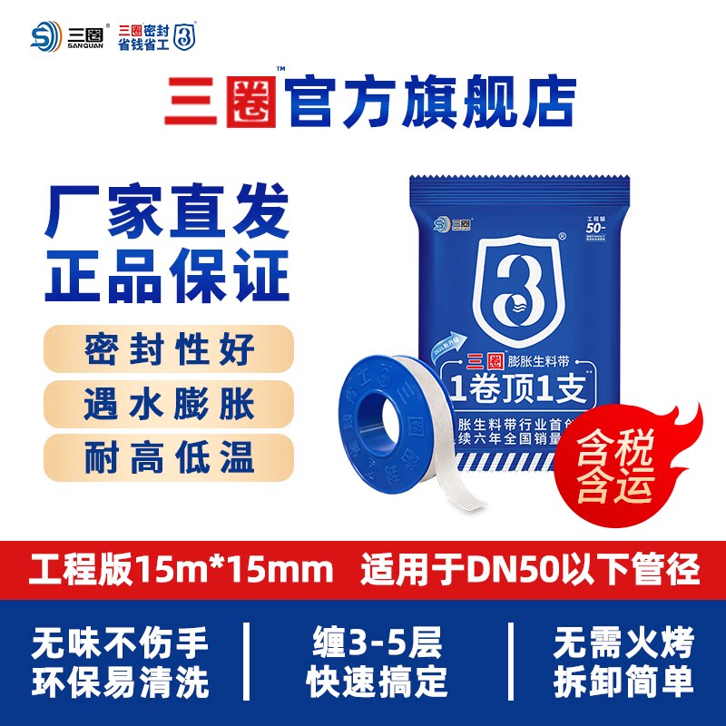三圈膨胀生料带不漏密封工程水暖地暖防水新型加长加厚生胶带麻丝