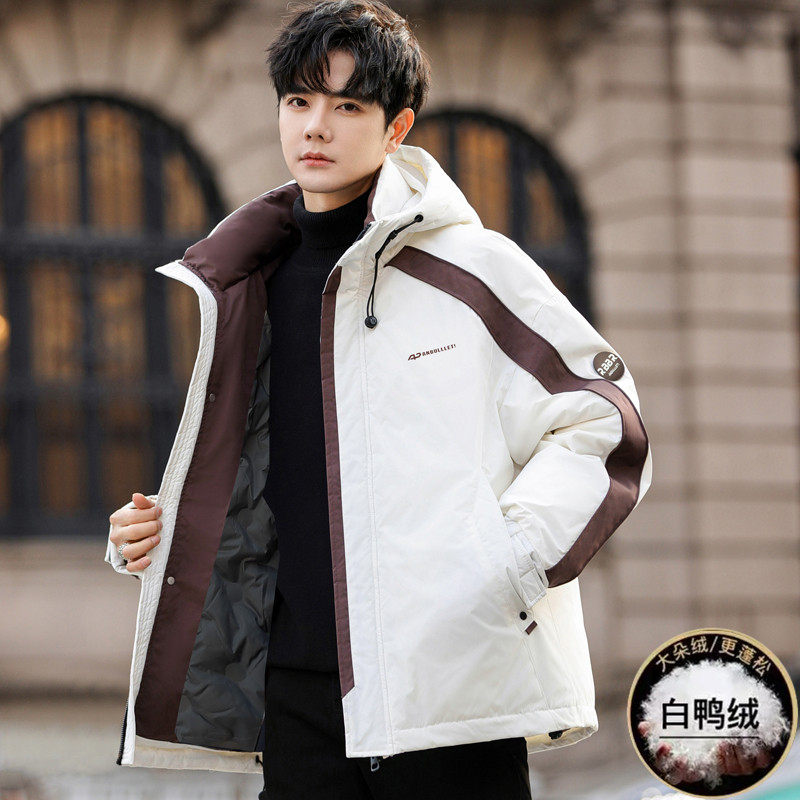- 羽绒服短款男连帽加厚
