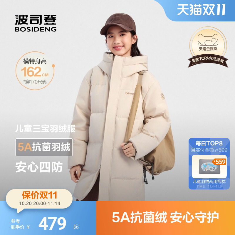 【170CM可选】波司登儿童羽绒服男女童中长款青少年运动羽绒外套