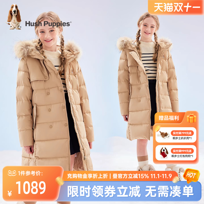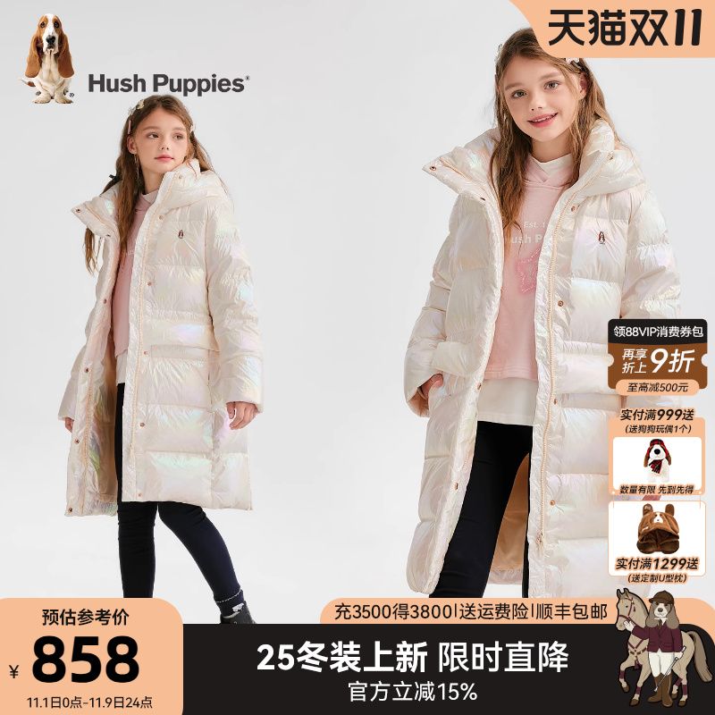 暇步士童装女童长款羽绒服25秋冬新款儿童连帽外套女宝宝加厚外套