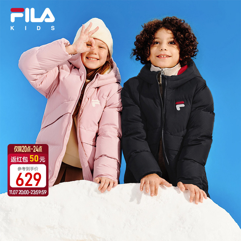 FILA斐乐儿童羽绒服中长款2025冬新款外套男女童防风保暖宝宝冬装