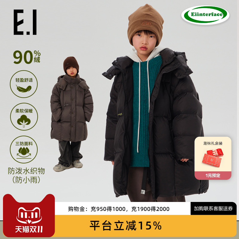 【超高充绒】ei童装女童长款羽绒服冬装新款男女童加绒加厚外套