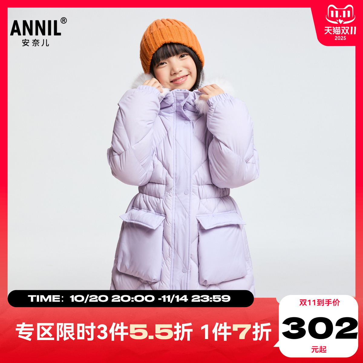 安奈儿童装女童长款羽绒服2025冬新款甜美收腰休闲防风防水外套