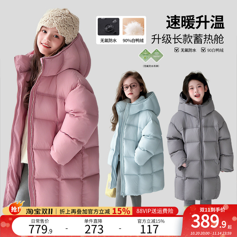 笛莎官方旗舰童装女童长款羽绒服秋冬季新款女孩儿童蓄热保暖三防