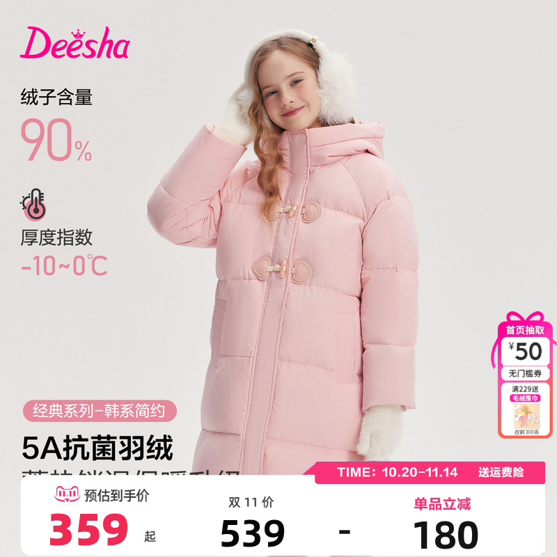 笛莎官方旗舰童装女童长款羽绒服秋冬季新款女孩儿童时尚保暖过膝
