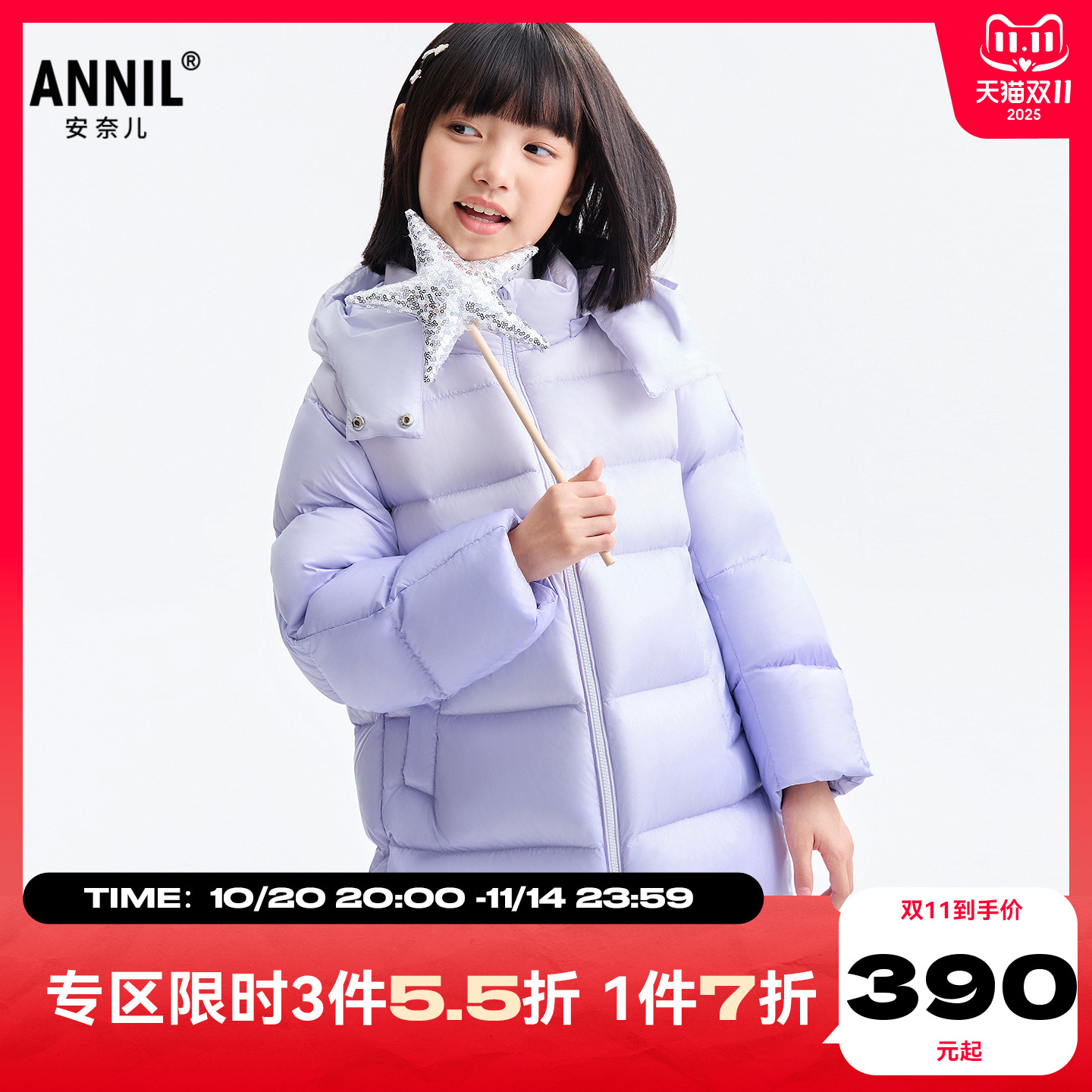 安奈儿童装女童长款羽绒服2025冬新款休闲宽松三防保暖厚款外套