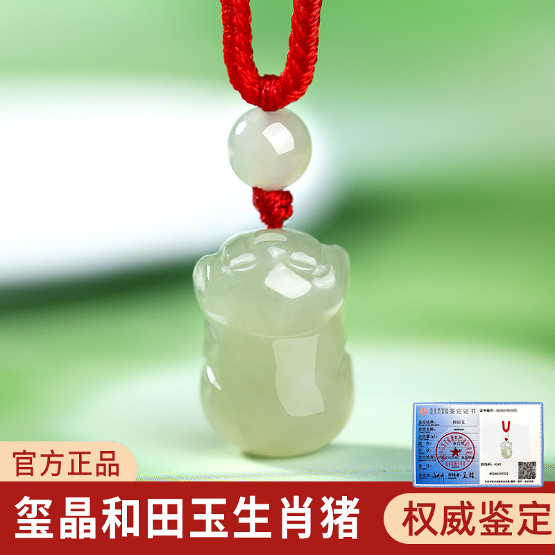 天然真品和田玉生肖猪吊坠羊脂白玉属猪手机链挂件吉祥物男女礼物