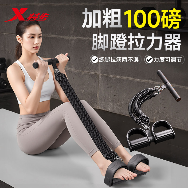 特步脚蹬拉力器可调节仰卧起坐辅助绳男女瘦肚子健身器材腹肌训练