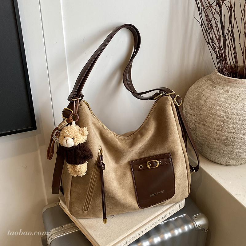 休闲麂皮绒包包2025新款大容量女双肩包通勤后背包多用单肩托特包