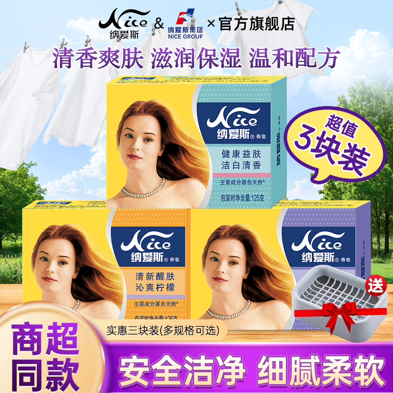 纳爱斯香皂沐浴皂3块家用实惠装细腻柔软温和洁净官方正品旗舰店