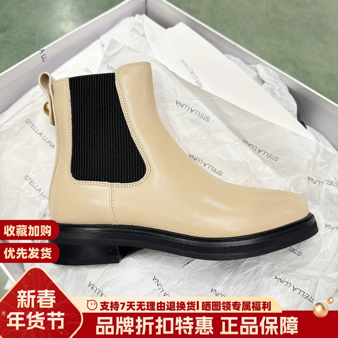 露娜女鞋秋季圆头平跟真皮切尔西靴时尚套筒短靴女户外靴SL322037