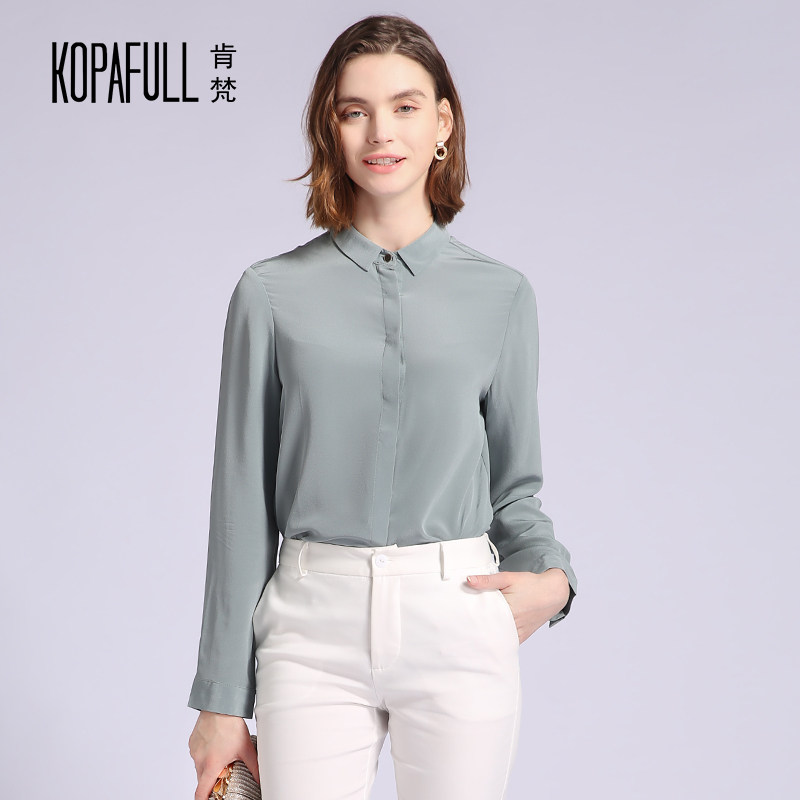 肯梵2025秋重磅双绉桑蚕丝真丝衬衫女长袖大码宽松中长款纯色上衣