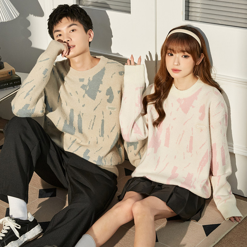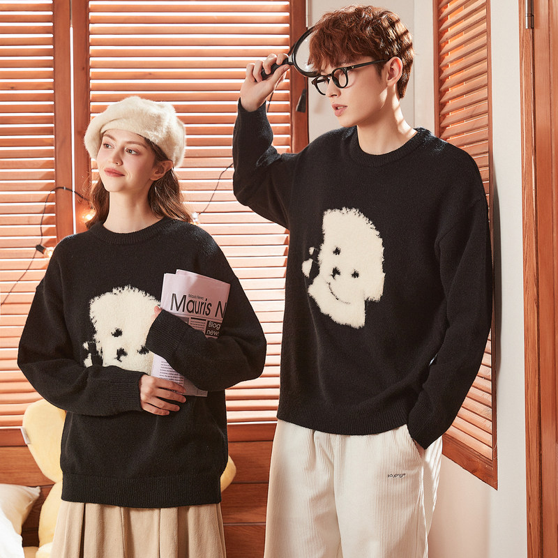 唐狮情侣装毛衣秋冬季新款男女圆领毛线衣青少年宽松外穿针织衫潮