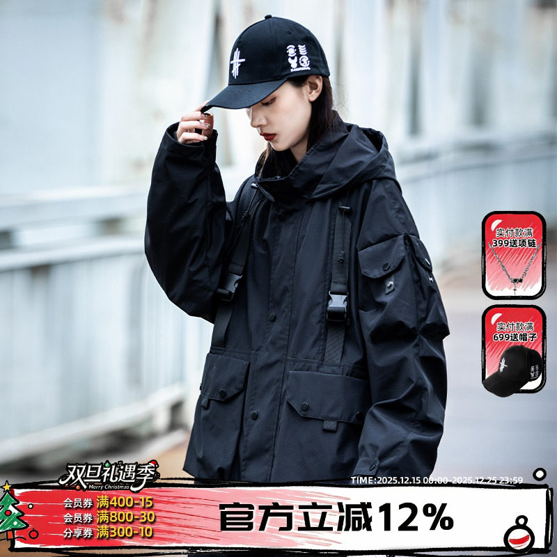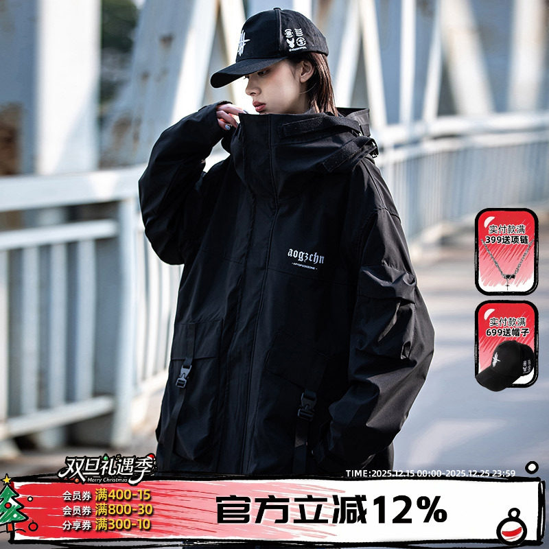 AOGZ国潮牌伞兵工装外套男女秋冬新款口袋夹克机能风情侣装冲锋衣