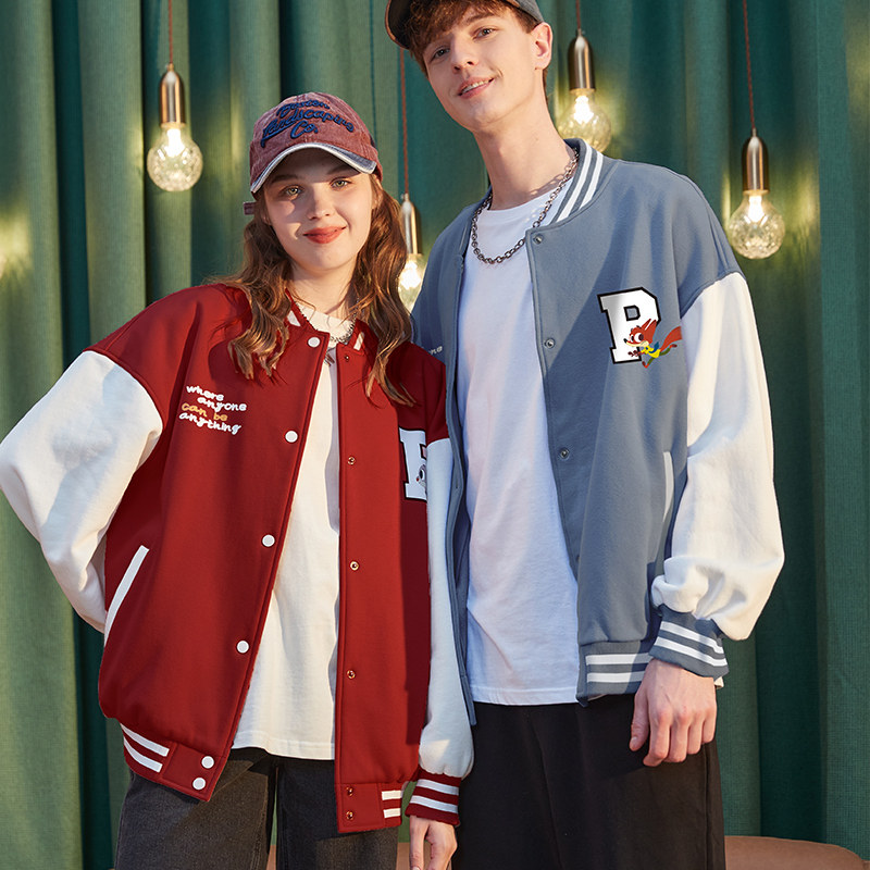 唐狮春秋季棒球服情侣外套时尚潮流男女学院情侣装美式棒球服上装