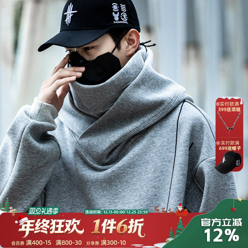 AOGZ国风潮牌重磅高领卫衣男女秋冬季加绒加厚情侣装oversize外套