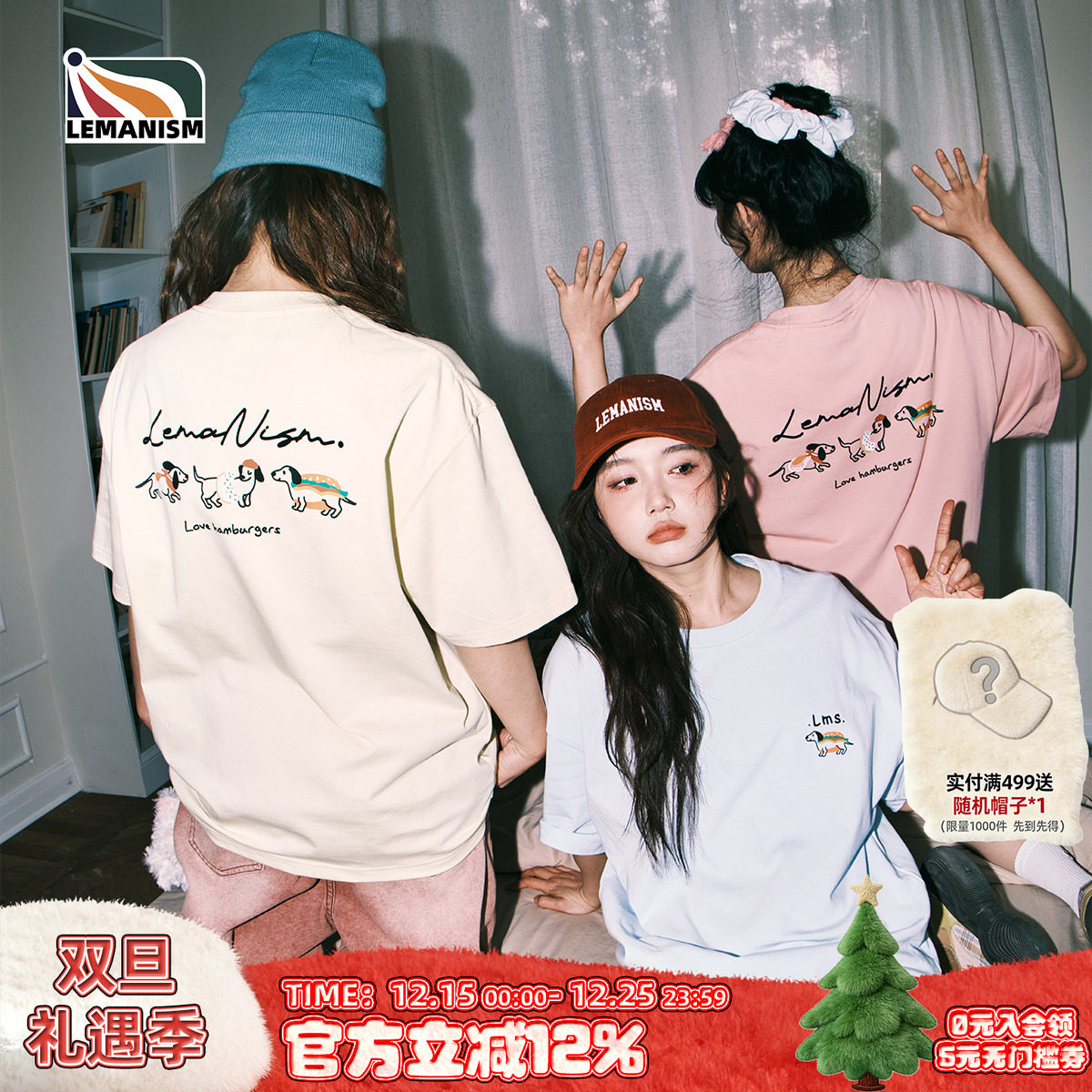 lemanism300g重磅腊肠狗短袖T恤男2025新款夏情侣装少年感打底衫