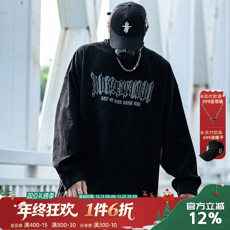 AOGZ圆领卫衣男款oversize春秋季美式潮牌长袖情侣装无帽加绒上衣