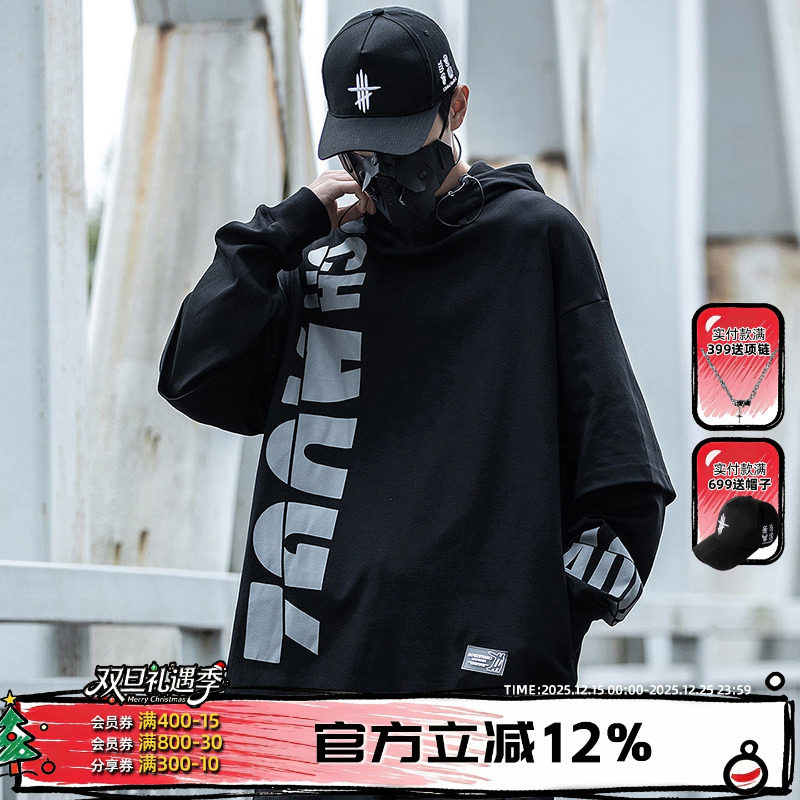 AOGZ国潮牌春秋季卫衣男连帽oversize高街ins设计感情侣装假两件
