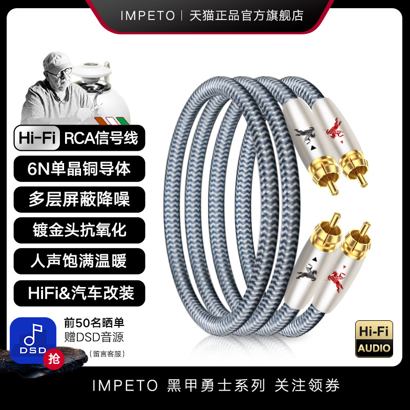 IMPETO罗马战神发烧级6N单晶铜2RCA双莲花头音频线CD接功放信号线