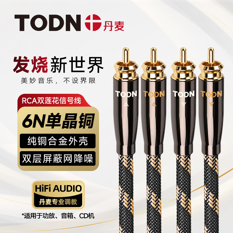 丹麦同顿 发烧级二对二双莲花头音频线2RCA红白信号线专用音响线