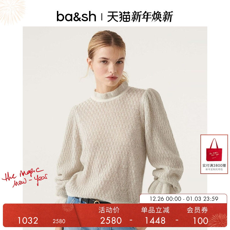 bash冬季法式气质女士上衣灯笼袖软糯针织衫长袖内搭打底1E23THOR