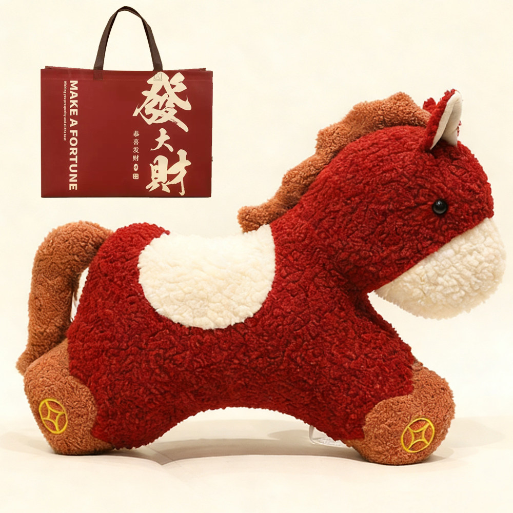 生肖小马2026马年吉祥物玩偶抱枕毛绒玩具新年儿童礼物可定制LOGO