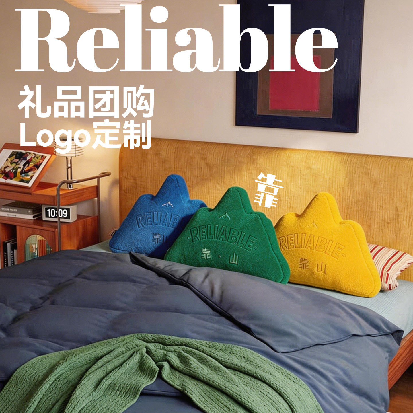 创意靠山靠垫公司礼品定制logo靠枕办公室礼物抱枕工位山形抱枕毯