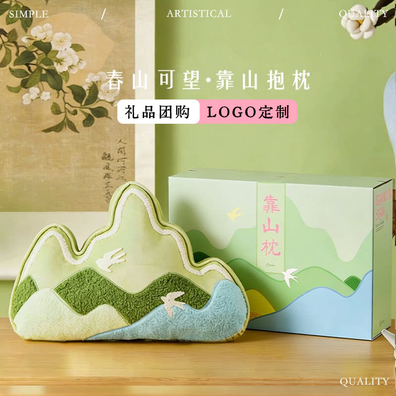 千里江山抱枕刺绣靠山靠垫高端商务礼品定制logo玩偶靠枕工位靠背