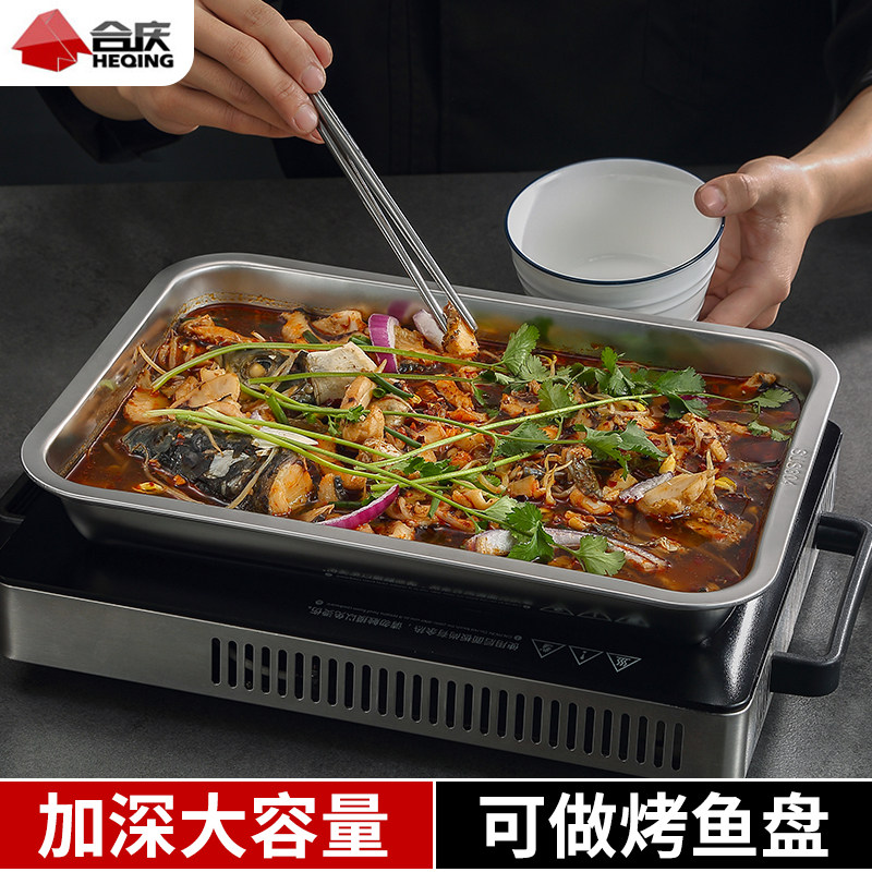 304不锈钢托盘矩形烤箱专用烤盘深方形托盘商业烤鱼板与过滤器