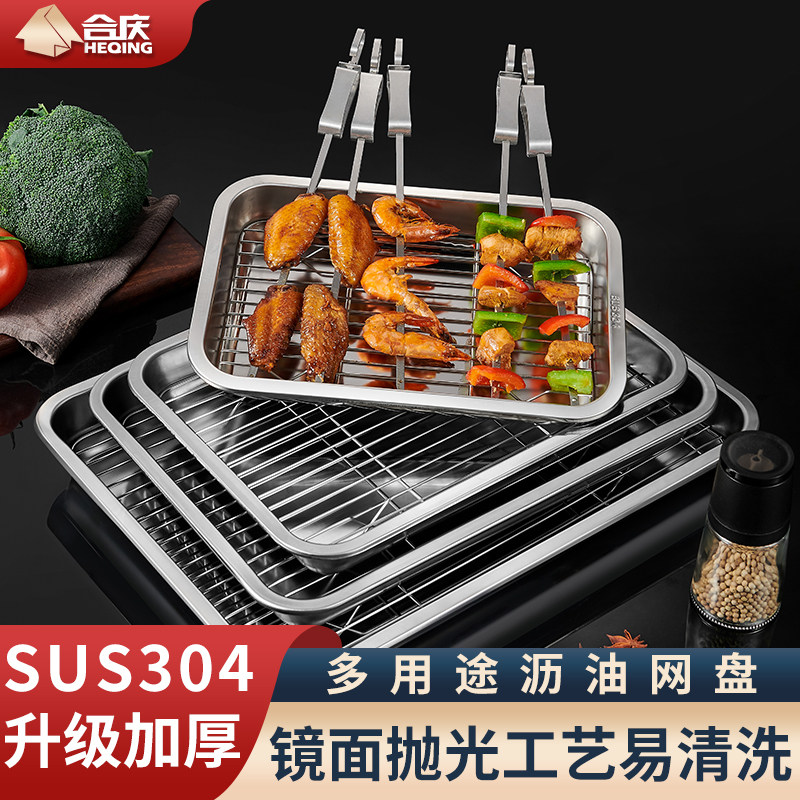 不锈钢烤盘烤箱用烧烤盘食品级烤肉专用空气炸锅家用托盘网架沥油