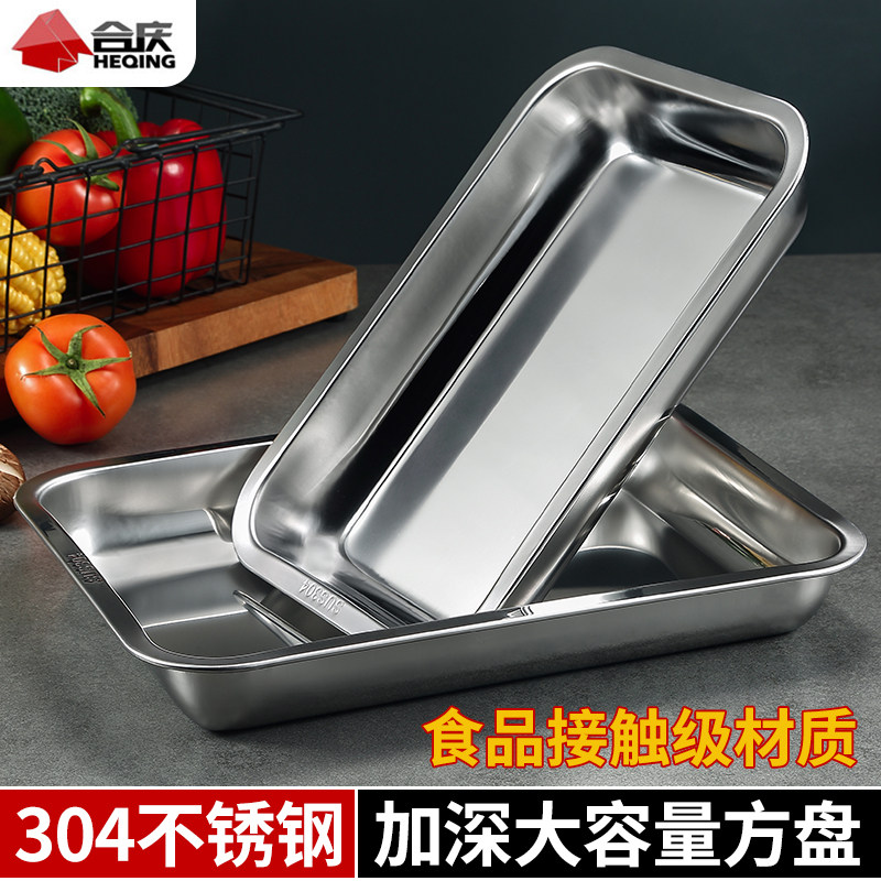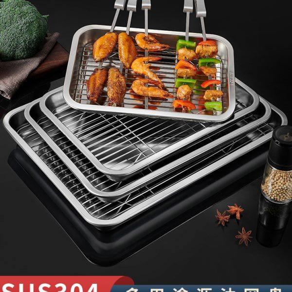烤箱专用烤盘304不锈钢沥油盘厨房长方形托盘商用烘焙油炸烧烤盆