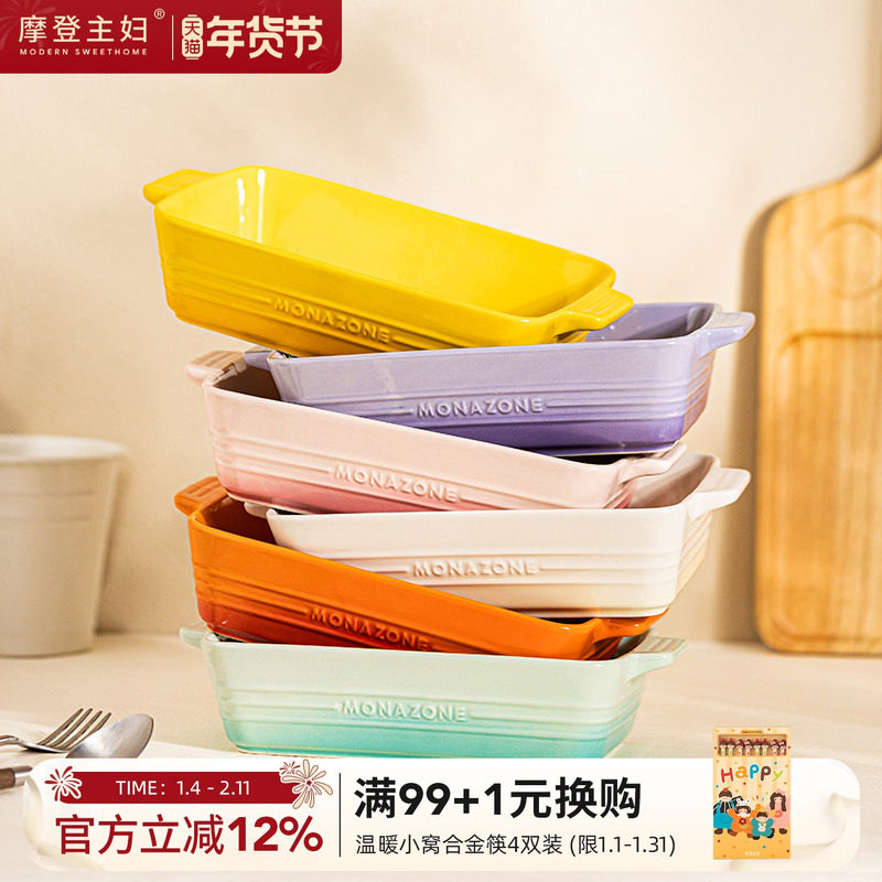 摩登主妇MONAZONE烤盘烤箱用陶瓷盘子双耳焗饭烤碗微波炉专用器皿