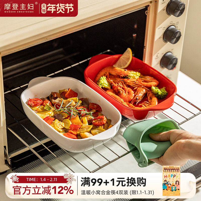 摩登主妇焗饭盘陶瓷双耳烤碗家用微波炉盘子高级感烤盘烤箱专用碗