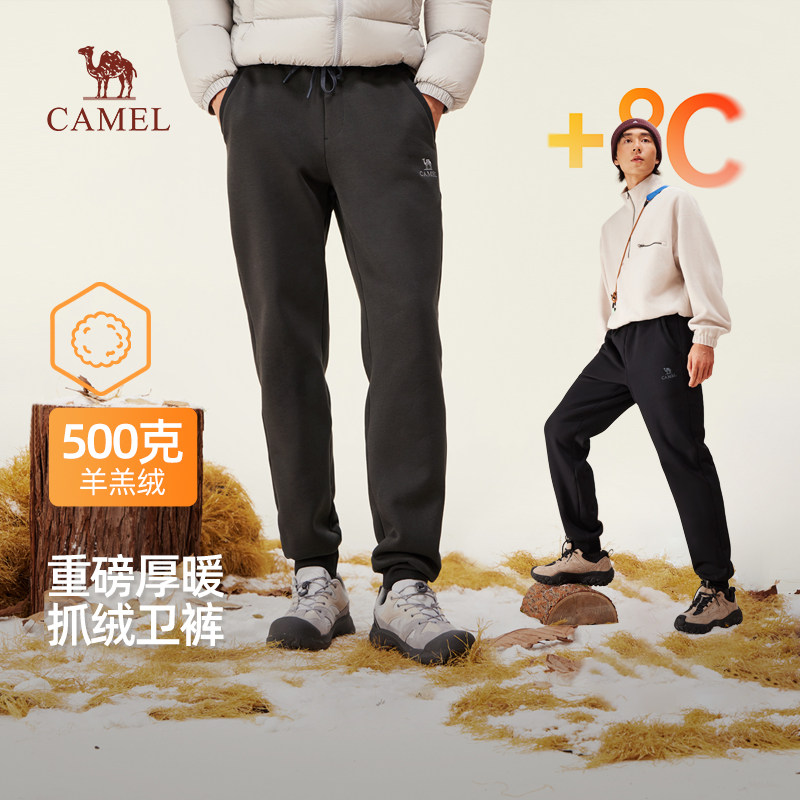 骆驼男装冬季2025羊羔绒卫裤男加绒保暖运动裤户外针织男裤子