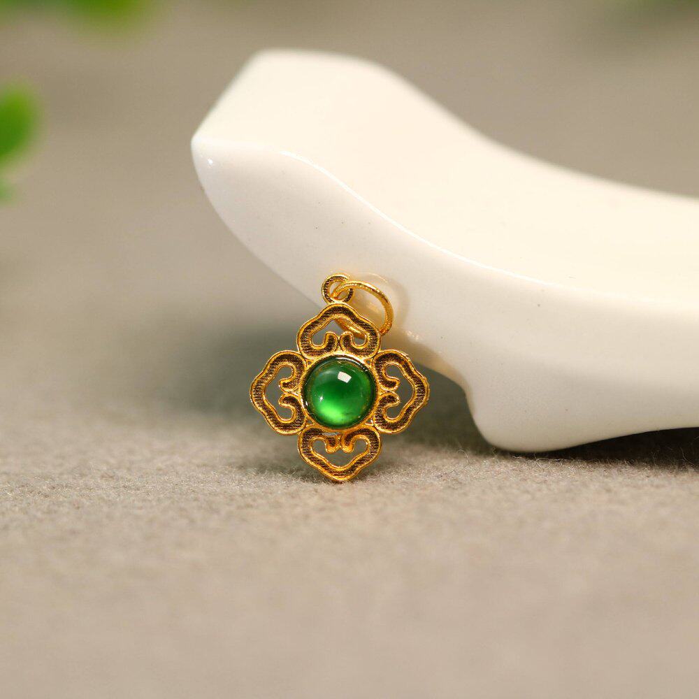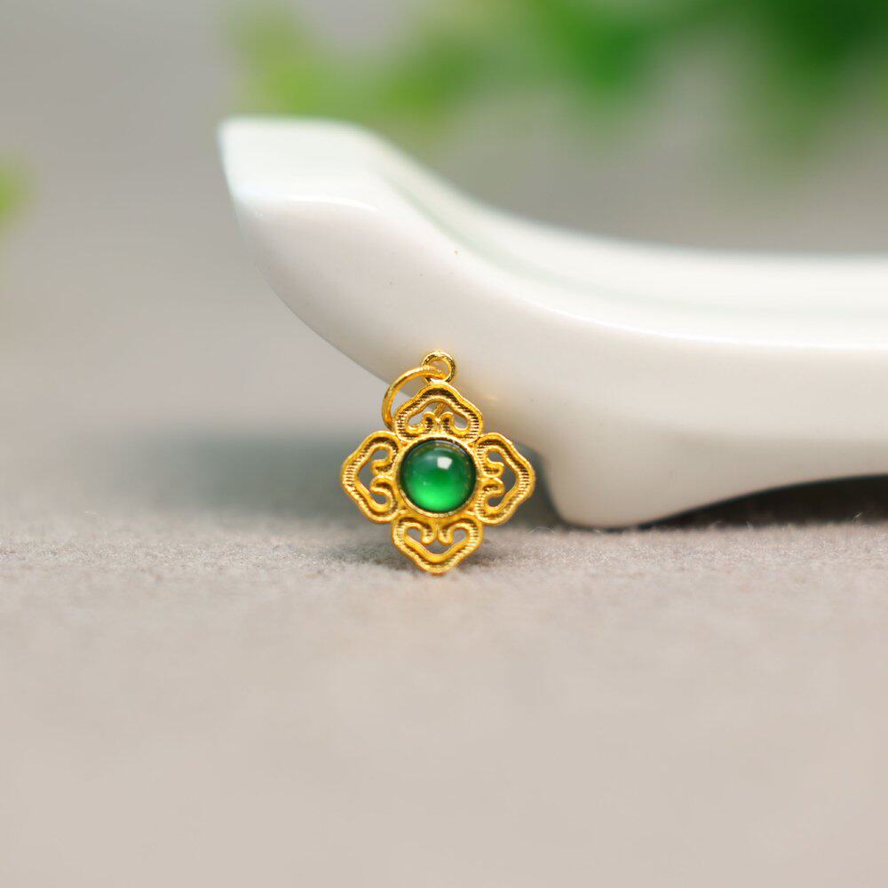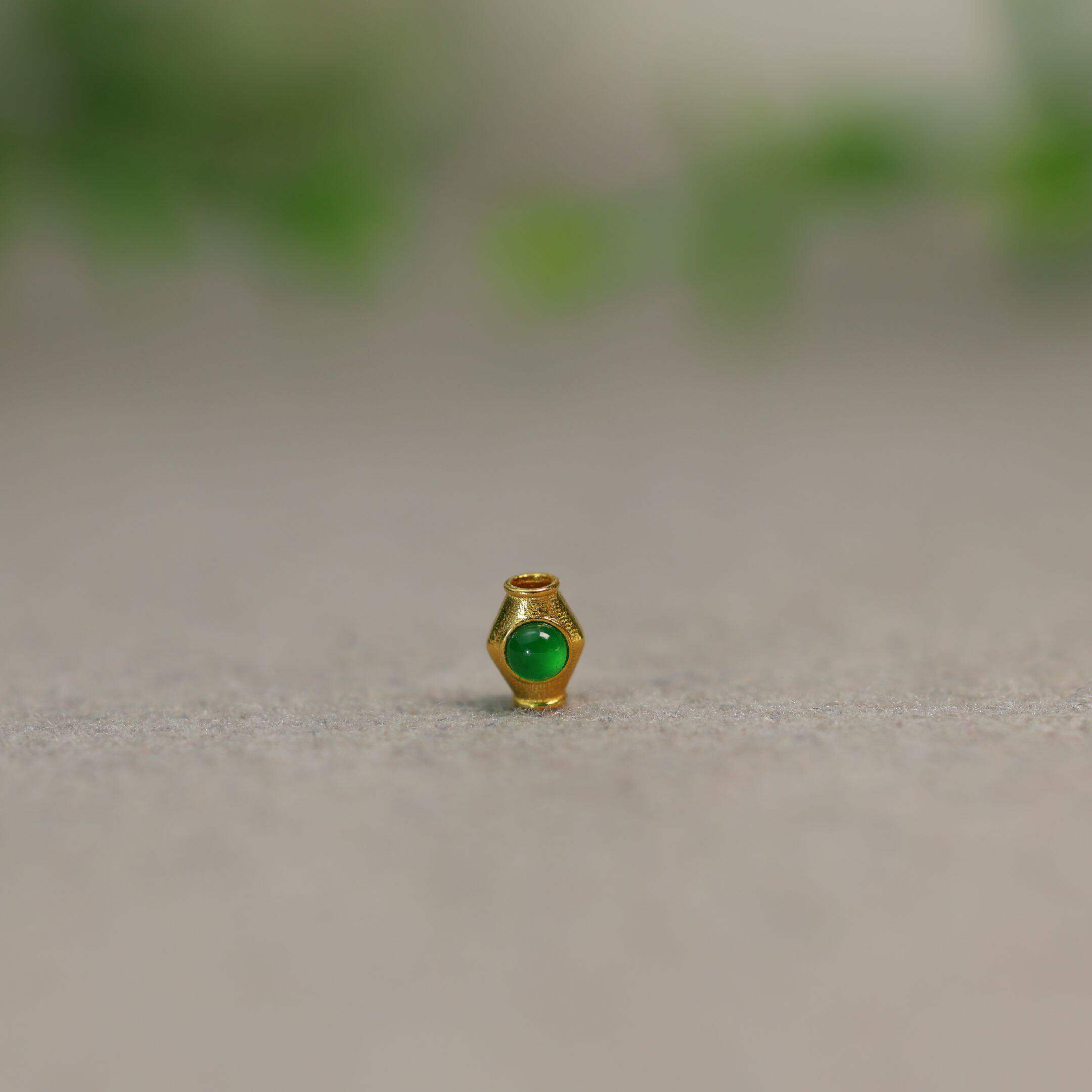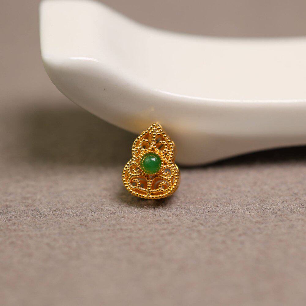 18K金花丝工艺镶嵌冰种天然A货翡翠蛋面葫芦通天孔配饰小配件
