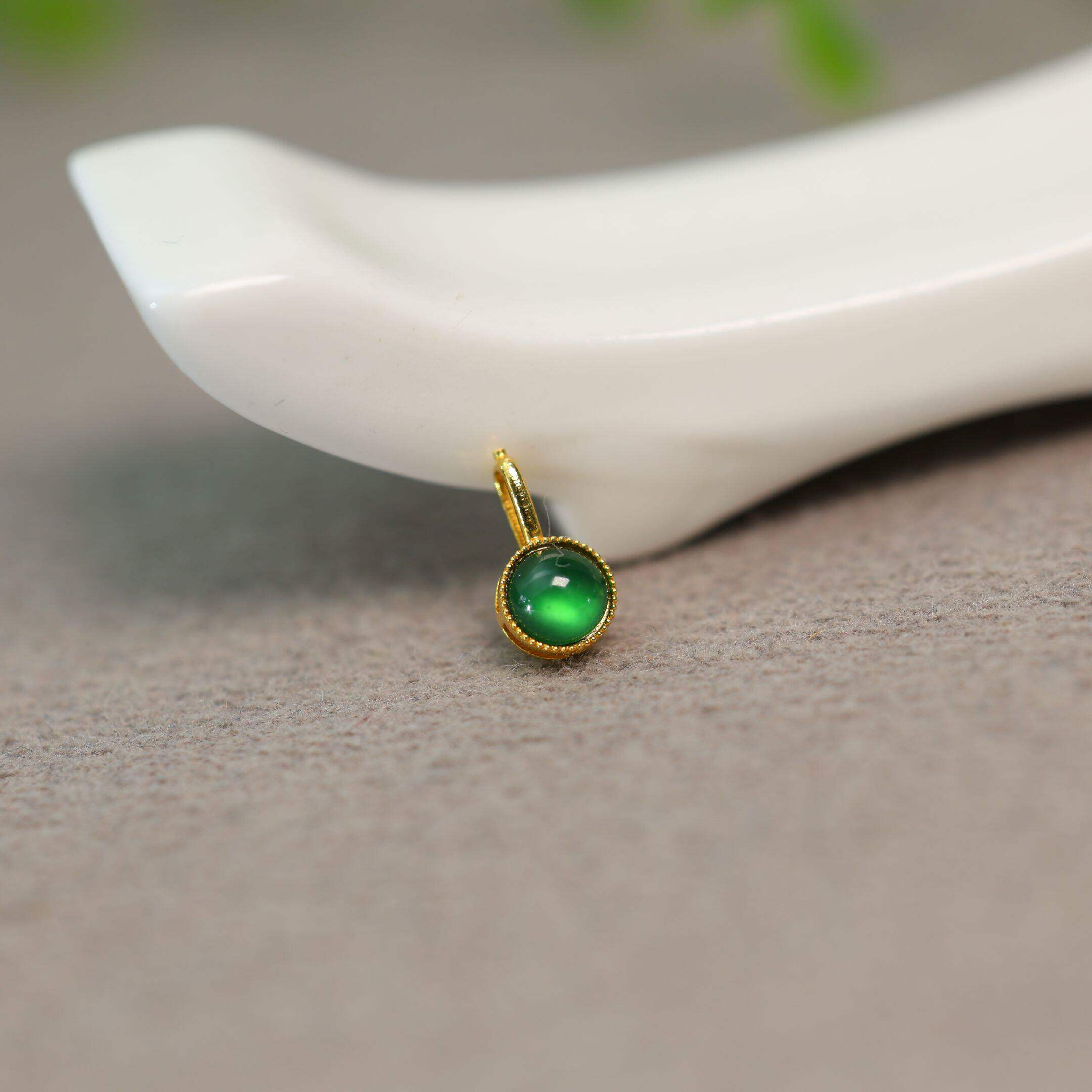 #J179 18K金冰种满绿天然A货翡翠蛋面双耳环小坠角DIY编绳配件