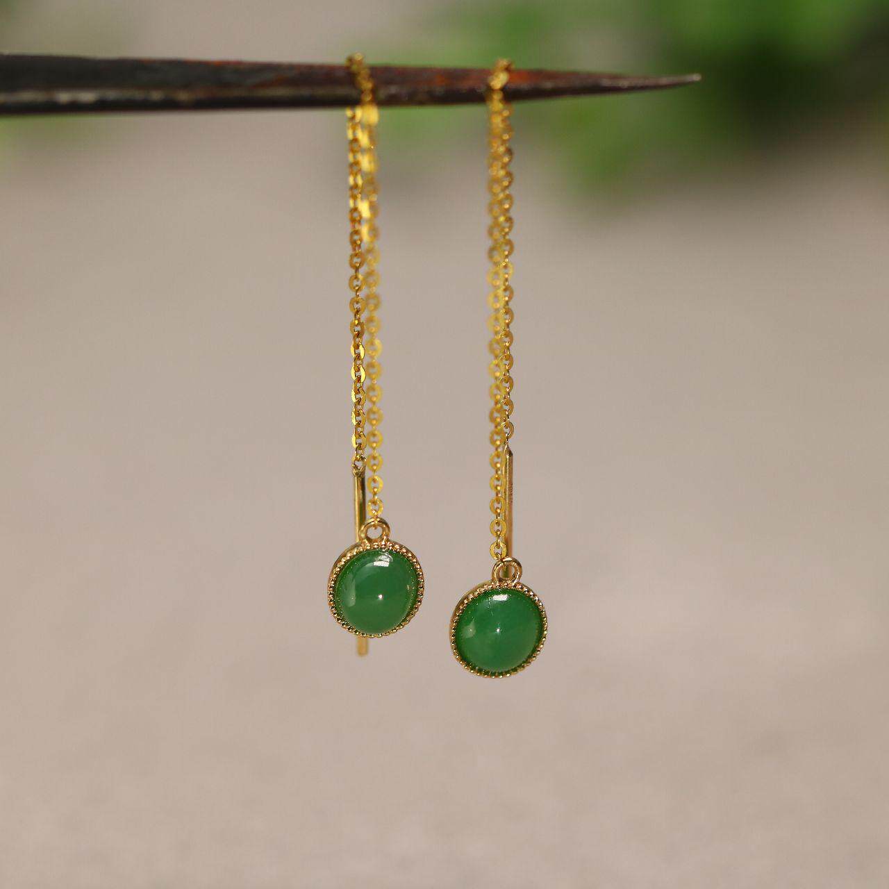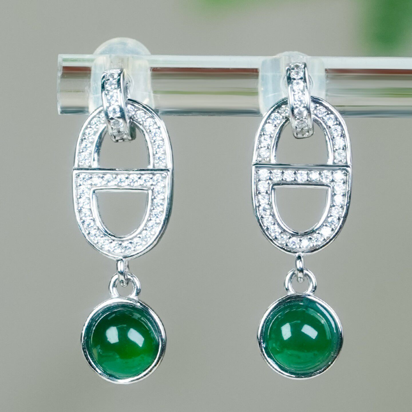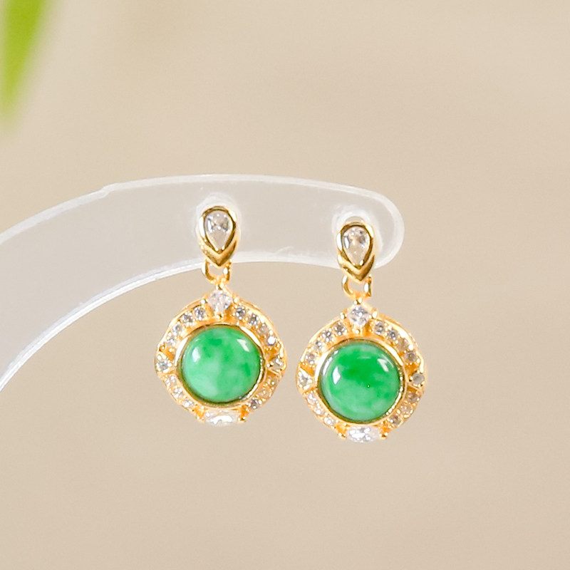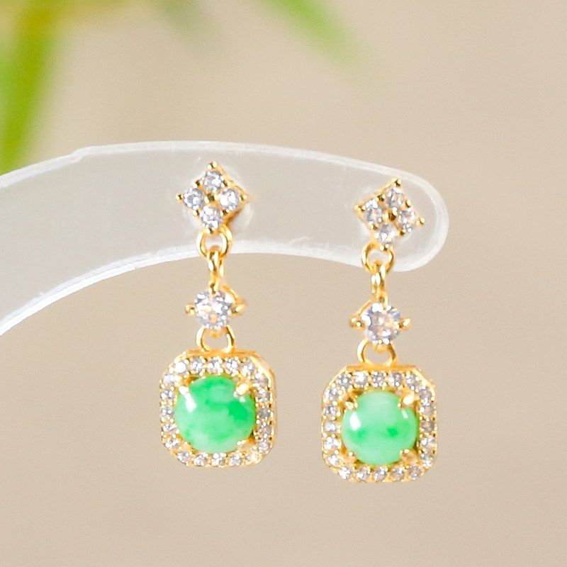 925 银镶嵌天然翡翠A货精致时尚飘阳绿翡翠蛋面耳坠耳环节日送礼
