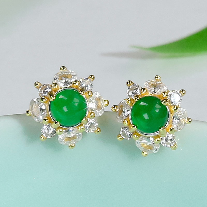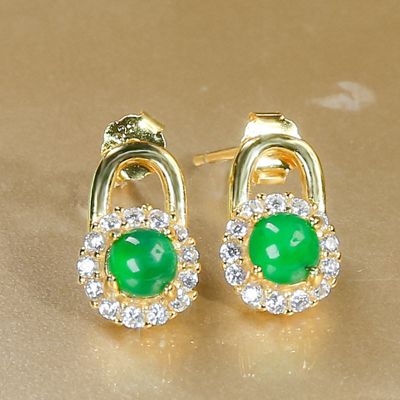 925银镶嵌天然翡翠A货精致时尚阳绿翡翠蛋面耳钉耳环送妈妈送爱人