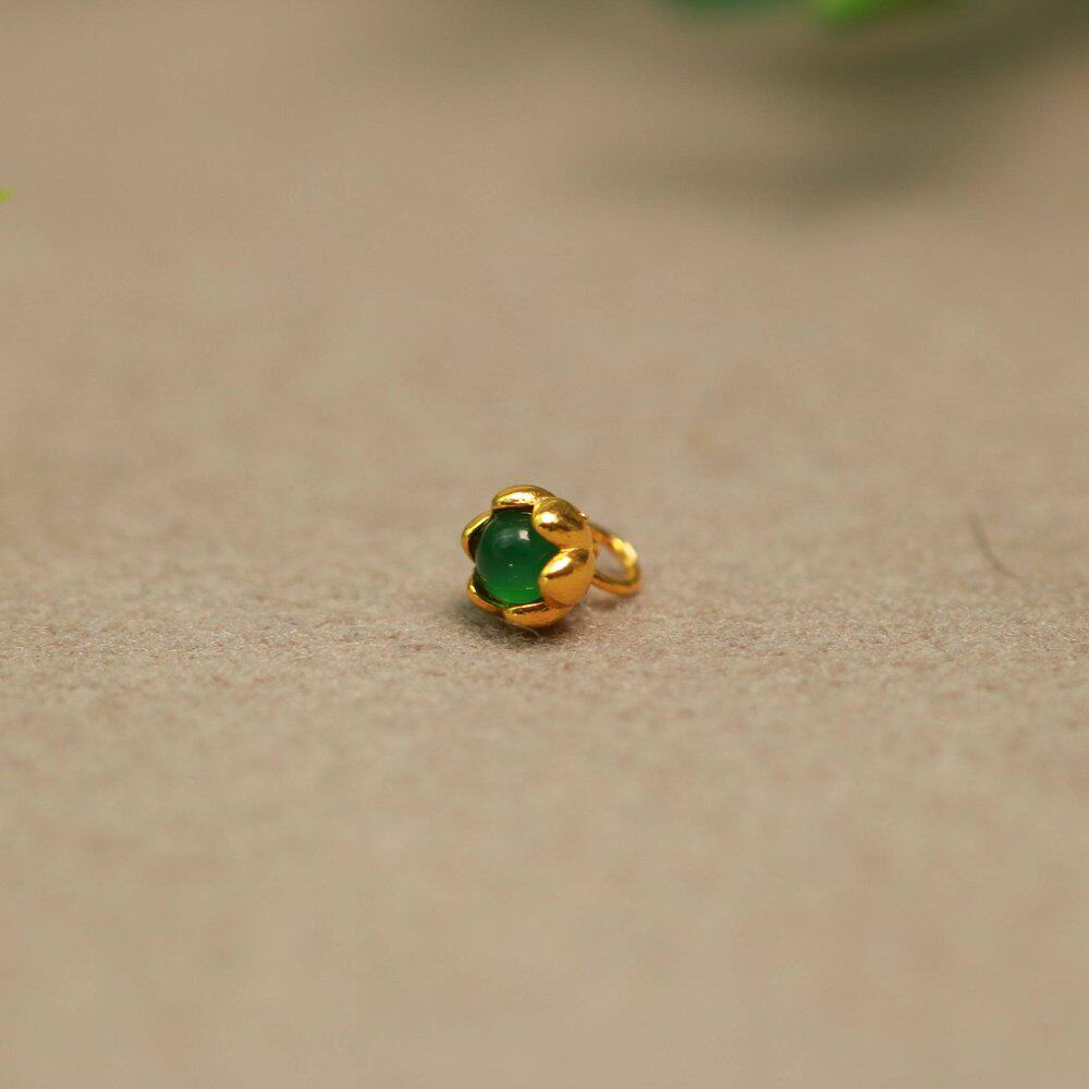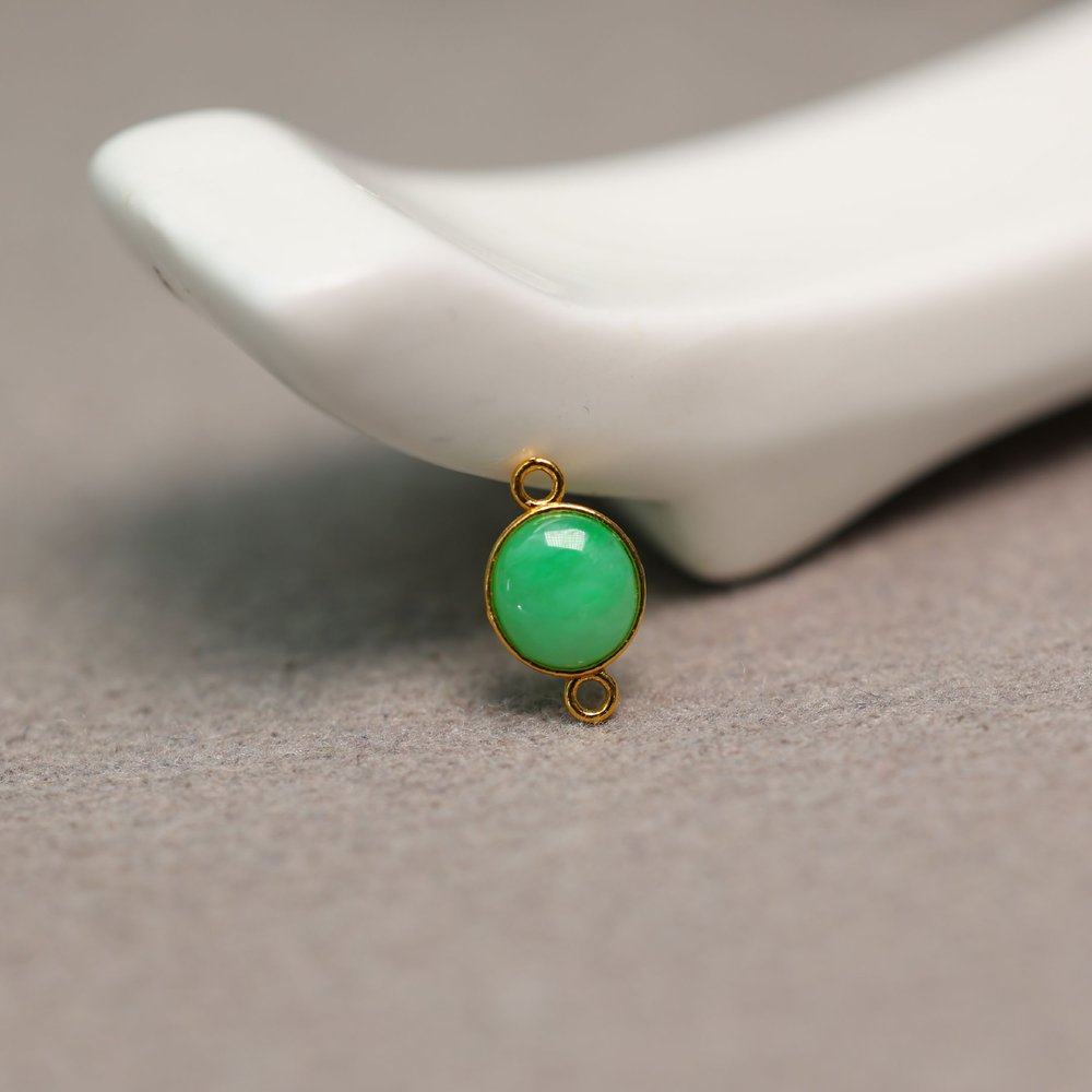 #G471 18K金镶嵌满色阳绿天然A货翡翠蛋面DIY手链小配件