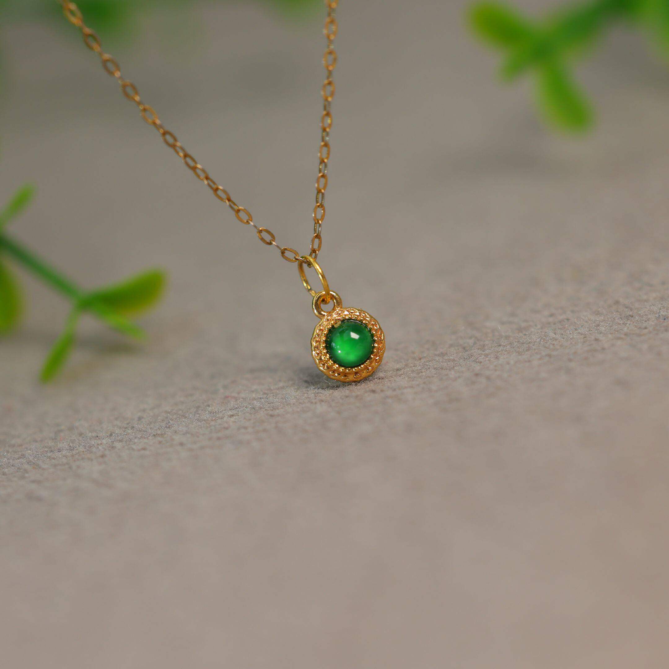 天然高冰种辣阳绿色翡翠蛋面18k黄金吊坠锁骨项链手串配件可叠戴