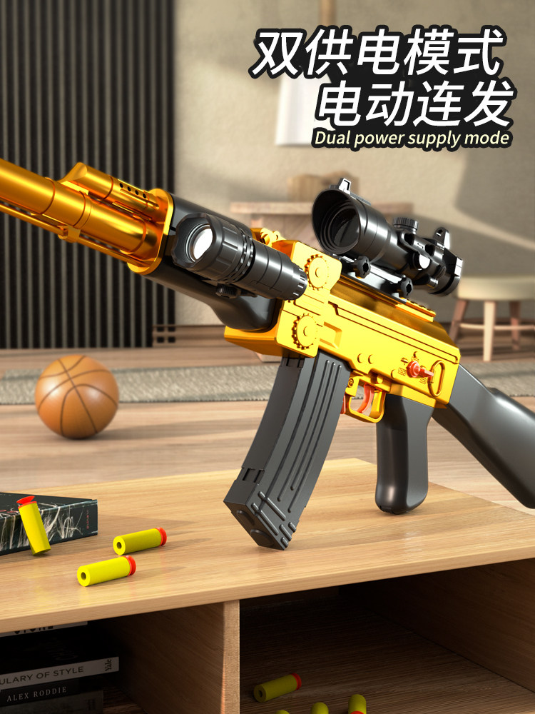 全套装备儿童玩具枪男孩仿真黄金ak47电动连发软弹步枪大号狙击抢