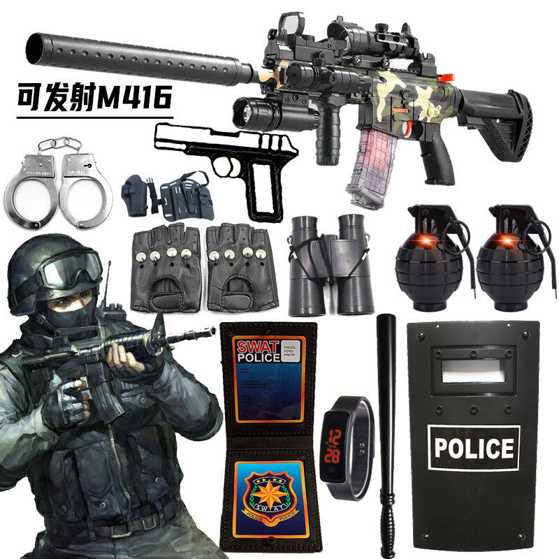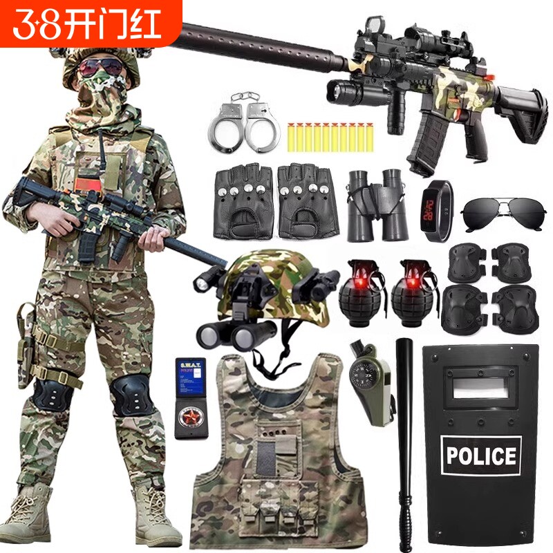 儿童小警察玩具枪男套装特种兵演出服黑猫警长特警软弹枪狙击电动