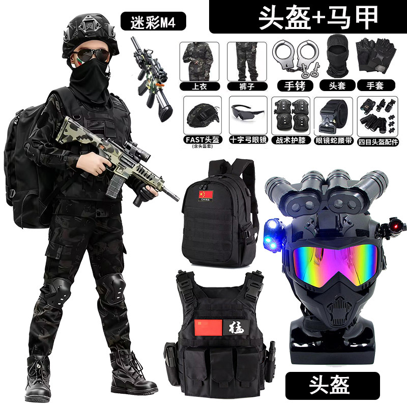 儿童套装玩具枪男孩军装软弹枪迷彩装备电动头盔战术金属冲锋气动