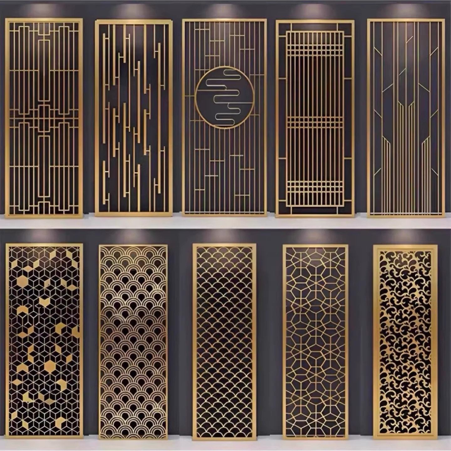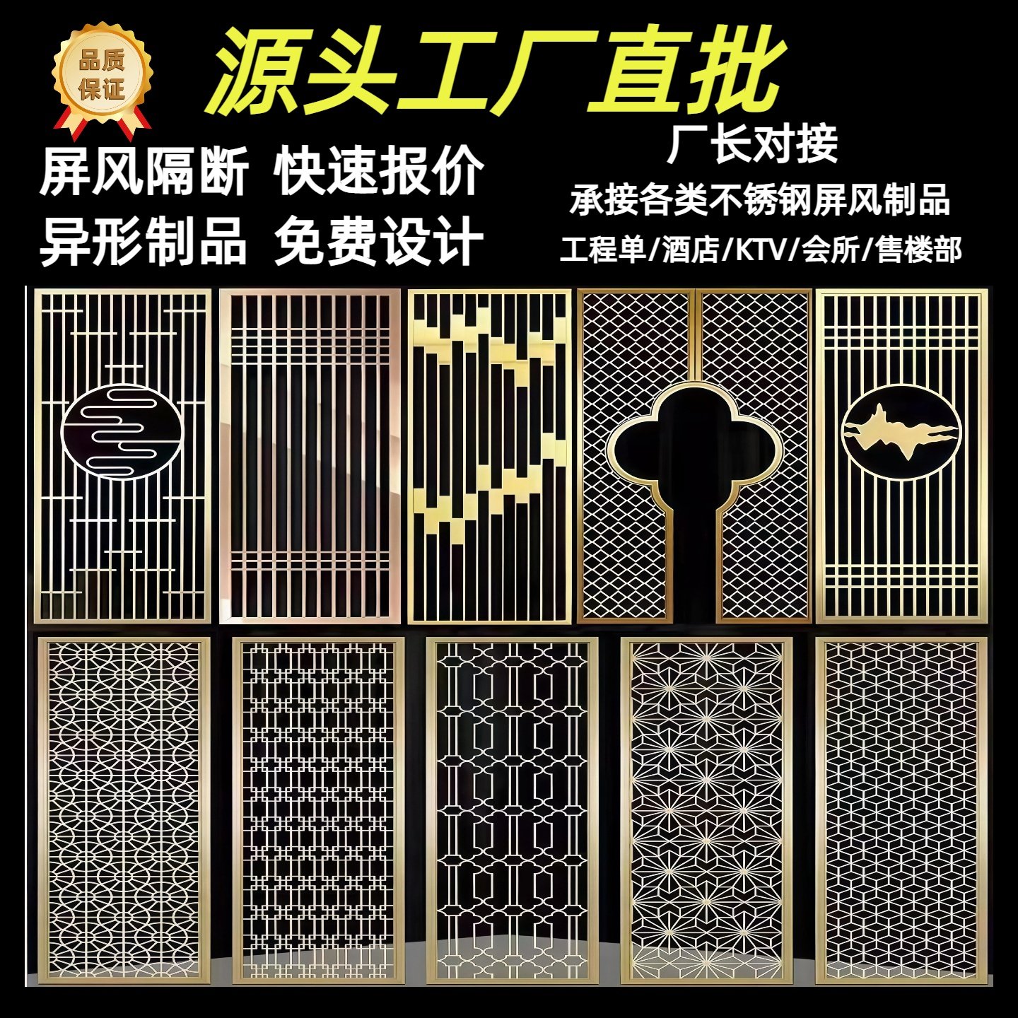 轻奢不锈钢屏风隔断镂空花格新中式格栅酒店客厅现代简约金属定制